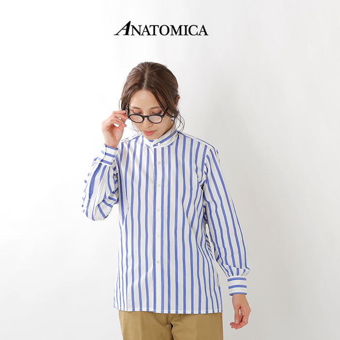 Anatomica アナトミカ Women Sコットンストライプバンドカラーシャツ 531 542 05 Yn Iroma Aranciato